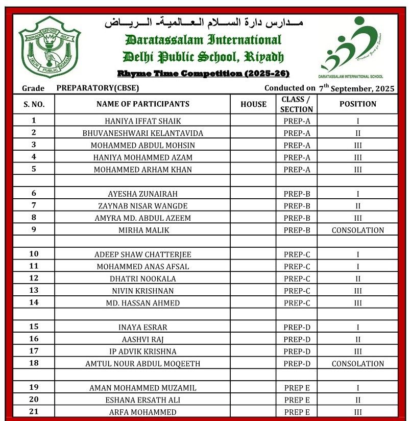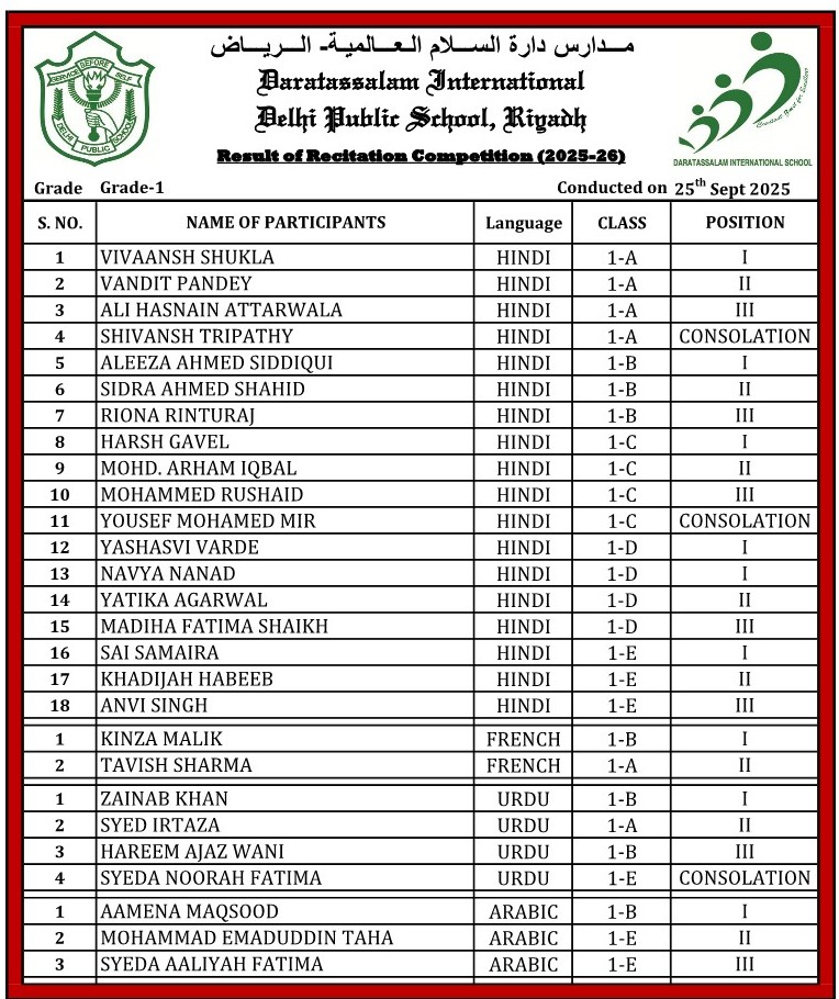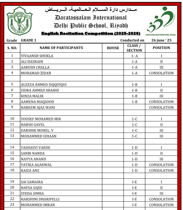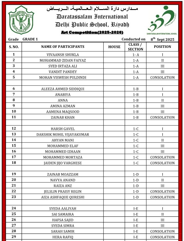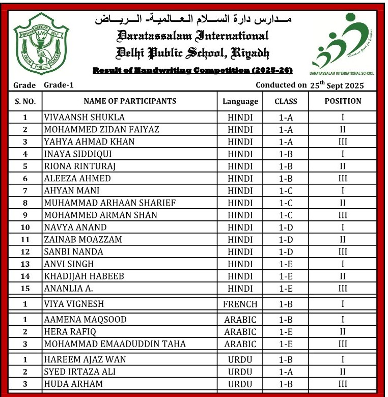 1. Handwriting Competition (Grade 2 to 5) Girls Section